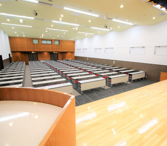 | 使用可能備品 | 4Kレーザープロジェクター(10,000㏐、スクリーン7.1m×2.6m、最大投影4.2m×2.6m)、マイク(有線ハンド、無線ハンド、無線ピン)、CD/DVDプレーヤー等 |